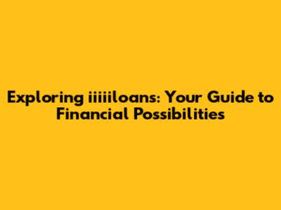 Exploring Iiiiiloans: Your Guide To Financial Possibilities