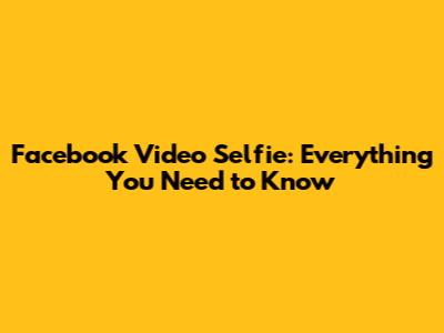 Facebook Video Selfie: Everything You Need To Know