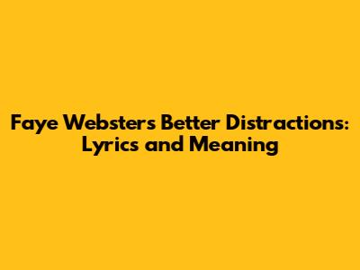 Hey guys! Let's dive into the beautiful and somewhat melancholic world of Faye Webster, specifically her song "Better Distractions." If you're anything like me, you've probably found yourself completely lost in her dreamy soundscapes and introspective lyrics. This article is all about unpacking the meaning behind "Better Distractions," exploring its lyrical content, and understanding why it resonates with so many of us. So, grab your headphones, maybe a cup of coffee, and let's get started!