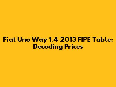 Hey there, car enthusiasts! Ever found yourself scratching your head, trying to figure out the real value of a Fiat Uno Way 1.4 from 2013? Well, you're not alone! The FIPE Table (Tabela FIPE) is the go-to resource in Brazil for vehicle valuations, and today, we're diving deep into the specifics of the 2013 Fiat Uno Way 1.4. Understanding the FIPE table is super important when you're buying, selling, or even just insuring your car. It gives you a benchmark, a starting point for negotiations, and a way to ensure you're getting a fair deal. This guide will walk you through everything you need to know about the FIPE table and the 2013 Fiat Uno Way 1.4, making sure you're well-equipped to navigate the car market like a pro. We'll break down what the FIPE table is, how it works, and how to use it to your advantage. Get ready to become a FIPE table expert!