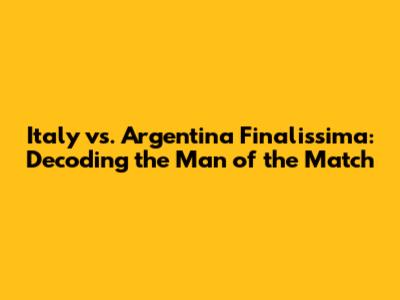 Hey guys! Let's dive deep into the thrilling Finalissima clash between Italy and Argentina. This match wasn't just any friendly; it was a battle of titans, a showcase of footballing excellence. And, of course, the big question on everyone's mind: Who snagged the coveted Man of the Match award? We'll break down the game, dissect the key performances, and ultimately reveal who shone the brightest on that unforgettable night. So, buckle up, grab your favorite snack, and get ready for a deep dive into the Finalissima! This was more than just a game; it was a statement. The energy was electric, the stakes were high, and the players gave it their all. The atmosphere in the stadium was buzzing, with fans from both sides creating a vibrant and passionate environment. The match itself was a tactical chess game, with both teams carefully strategizing and attempting to outmaneuver their opponents. The quality of play was exceptional, with skillful passes, stunning goals, and incredible saves. It was a true spectacle for football lovers, and the memories of that night will be etched in our minds for a long time. The anticipation leading up to the match was immense. The clash between the European Champions and the South American champions promised an exciting encounter. Both teams had a wealth of talent and were eager to prove their dominance on the international stage. The players prepared diligently, knowing that a strong performance would be vital for their respective countries. The coaches devised tactical plans to exploit their opponents' weaknesses and maximize their own strengths. The fans eagerly awaited the final whistle, ready to celebrate the victory of their chosen team. From the moment the players stepped onto the pitch, the intensity was palpable. Every pass, every tackle, every shot was delivered with a sense of purpose. The players displayed incredible athleticism and determination, running tirelessly throughout the match. They fought for every ball, showcasing their technical abilities and tactical understanding of the game. The teams exchanged blows, and the scoreline fluctuated, keeping the fans on the edge of their seats. The excitement and passion were contagious, and the match will go down in the history books as a classic encounter.