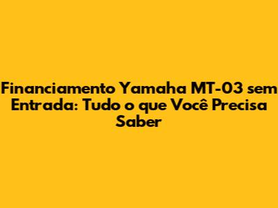 Como Funciona o Financiamento de uma MT-03 Sem Entrada?
