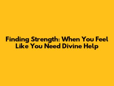Finding Strength: When You Feel Like You Need Divine Help