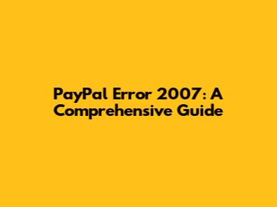 Fixing PayPal Error 2007: A Comprehensive Guide