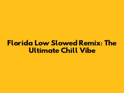 Florida Low Slowed Remix: The Ultimate Chill Vibe