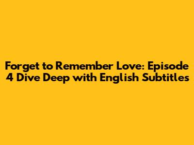 Hey everyone! πŸ‘‹ If you're anything like me, you're totally hooked on "Forget to Remember Love." This drama is a total rollercoaster of emotions, and Episode 4 is where things really start to heat up! πŸ”₯ We're diving deep into the key moments, character developments, and all the juicy details from Episode 4, all accessible with those lovely English subtitles. Let's break it down, shall we?