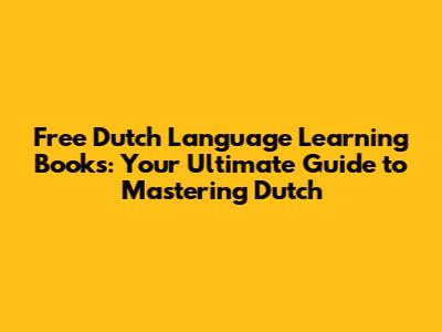 Free Dutch Language Learning Books: Your Guide