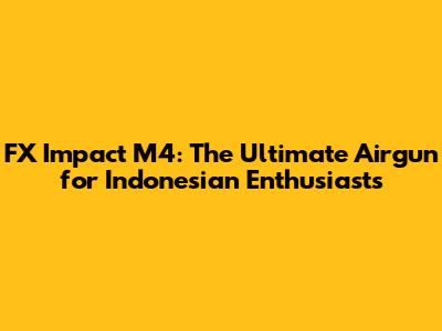 Hey guys! Today, we're diving deep into something seriously cool for all you airgun aficionados out there, especially those of you in Indonesia. We're talking about the FX Impact M4, a rifle that's practically legendary in the world of pre-charged pneumatic (PCP) airguns. If you've been following the airgun scene, you know the Impact series is pretty much the gold standard, and the M4 is the latest evolution, bringing even more power, precision, and versatility to the table. So, whether you're a seasoned shooter looking to upgrade or a curious newcomer wondering what all the fuss is about, stick around because we're about to break down why the FX Impact M4 is a game-changer, especially for the Indonesian market.