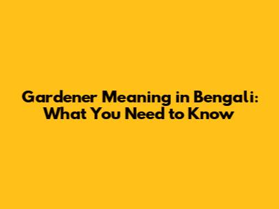 Gardener Meaning In Bengali: What You Need To Know