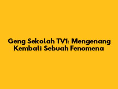 Geng Sekolah TV1 adalah lebih daripada sekadar sebuah drama televisyen; ia merupakan satu fenomena budaya yang merangkumi hati dan minda ramai rakyat Malaysia. Ditayangkan di TV1, drama ini mengisahkan kehidupan sekumpulan remaja sekolah menengah, menyoroti cabaran, perhubungan, dan pengalaman hidup mereka. Jelas sekali, Geng Sekolah TV1 bukan hanya tontonan biasa, tetapi juga cerminan realiti kehidupan remaja di Malaysia. Mari kita selidiki lebih dalam mengenai drama ini, dari nostalgia yang dibawanya hinggalah kepada kesan dan impaknya terhadap penonton.