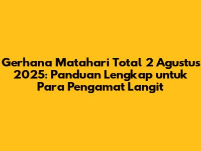 Semoga panduan ini membantu Anda mempersiapkan diri untuk menyaksikan Gerhana Matahari Total 2 Agustus 2025. Selamat menyaksikan gerhana!