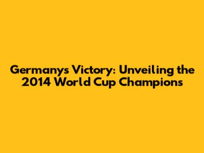 So there you have it, guys! The 2014 FIFA World Cup was a thrilling tournament, and Germany was the champion. From the group stage to the final, the German team displayed remarkable skill, tactical brilliance, and unwavering determination. Their victory was a testament to the power of teamwork, dedication, and the indomitable spirit of the game. The final match against Argentina was a nail-biter, but Mario Götze's goal sealed the win. The victory brought immense joy to German fans and solidified the team's legacy. Germany's 2014 World Cup victory will forever be remembered as one of the defining moments in football history. It's a tale of triumph, a testament to the beautiful game, and a reminder of the power of sport to unite and inspire.