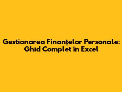 Gestionarea Finanțelor Personale: Ghid Complet În Excel