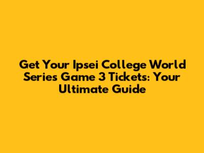 Hey sports fanatics! Are you ready for some serious baseball action? The Ipsei College World Series is heating up, and if you're anything like me, you're already dreaming about snagging those coveted Ipsei College World Series Game 3 tickets. This is the moment we've all been waiting for – the clash of titans, the nail-biting finishes, and the electric atmosphere that only the College World Series can deliver. But let's be real, getting your hands on those tickets can feel like a grand slam in itself. Don't worry, guys, I've got you covered with the ultimate guide to securing your spot in the stands. We'll dive into everything from presale codes to the best websites for buying, ensuring you don't miss out on a single pitch of this epic showdown. Get ready to gear up and learn how to make sure you're part of the action, cheering on your favorite team as they battle for the championship. Let's get started and make sure you're ready to shout "Play Ball!" with the best of them.