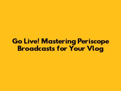 So there you have it, guys! Your guide to mastering Periscope-inspired broadcasts for your vlog. By embracing the power of live video, you can connect with your audience in a more authentic and engaging way, build a loyal community, and take your content to the next level. Now go out there, hit that "Go Live" button, and start broadcasting your awesomeness to the world!