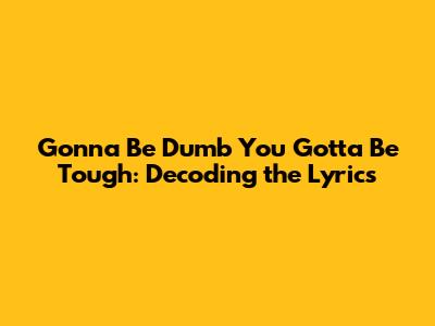 Hey guys! Ever heard a song that just sticks in your head, and you can't help but wonder what it really means? Today, we're diving deep into the lyrics of "Gonna Be Dumb You Gotta Be Tough." This phrase, often repeated and resonating with a certain rebellious spirit, has a lot more to it than meets the ear. We're going to break down the possible interpretations, cultural context, and why it might strike a chord with so many people.