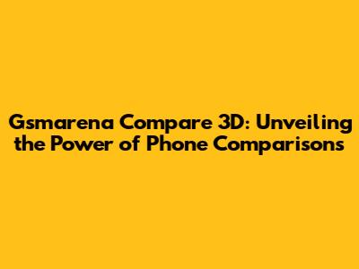Gsmarena Compare 3D: A Comprehensive Guide