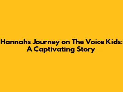 Hannah On The Voice Kids: Her Inspiring Journey & Performances