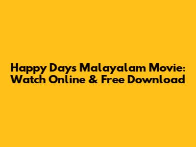 Happy Days Malayalam Movie: Watch Online & Free Download
