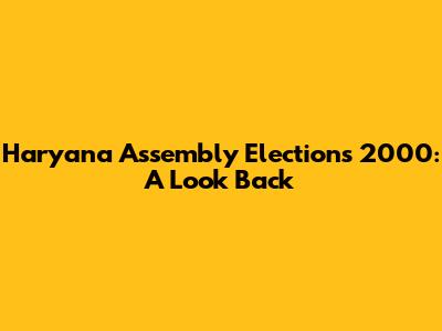 Haryana Assembly Elections 2000: A Look Back
