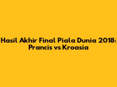 Final Piala Dunia 2018 adalah pertandingan yang tak terlupakan. Prancis tampil sebagai juara dengan performa yang solid dan strategi yang matang. Kroasia, meskipun kalah, menunjukkan semangat juang yang luar biasa dan berhasil meraih tempat kedua. Skor final Piala Dunia 2018 menjadi bukti dari intensitas dan drama yang terjadi di lapangan. Pertandingan ini akan terus dikenang sebagai salah satu momen terbaik dalam sejarah sepak bola.