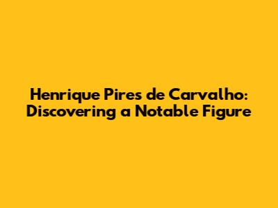 Henrique Pires De Carvalho: Discover The Life Of A Notable Figure