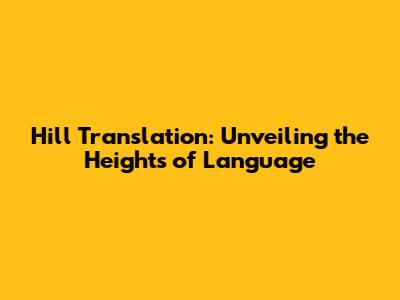 Hill Translation: Unveiling The Heights Of Language