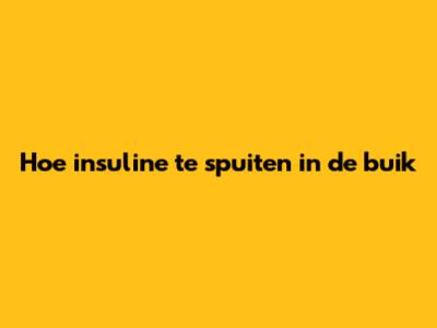 Hoe Insuline Te Spuiten In De Buik