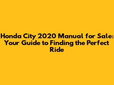 Honda City 2020 Manual: Find Yours Today!