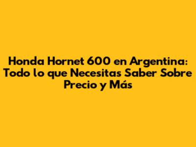 Honda Hornet 600 Argentina: Precio, Características, Y Dónde Comprar