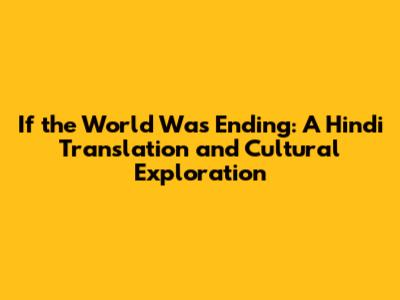 In Hindi literature, movies, and music, the theme of the world ending is often explored through various lensesโ€”spiritual, romantic, and apocalyptic. Knowing the translation of "if the world was ending" can help you appreciate these works on a deeper level. You might come across this phrase or similar expressions in songs about love and loss, in philosophical poems, or in dramatic movie scenes.