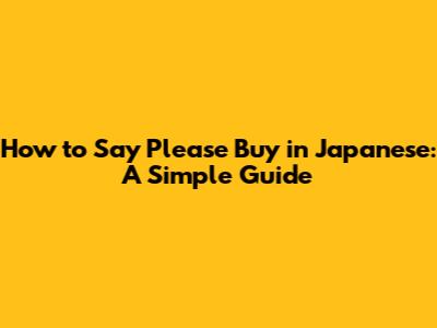 How To Say Please Buy In Japanese: A Simple Guide