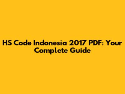 HS Code Indonesia 2017 PDF: Your Complete Guide