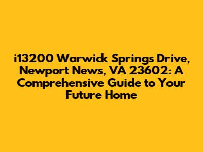 Hey everyone! Looking for a new place to call home in Newport News, VA? Well, today we're diving deep into i13200 Warwick Springs Drive, Newport News, VA 23602. We'll explore everything you need to know, from the location and neighborhood to the potential benefits of owning a home there. So, grab a coffee, and let's get started on this exciting journey to discover if this could be the perfect place for you. We'll be talking about homes for sale in Newport News, so let's get started!
