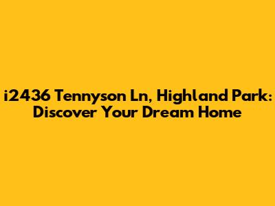 Hey guys! Are you dreaming of a new home in Highland Park? Well, buckle up, because we're diving deep into the stunning property at i2436 Tennyson Ln! This isn't just a house; it's a potential lifestyle upgrade, a place where memories are made, and your personal oasis awaits. Highland Park itself is known for its charm, excellent schools, and vibrant community, making it a highly sought-after location. Let's explore what makes this address so special, from its location to the potential of the property, and everything in between! I'm going to give you the lowdown on why i2436 Tennyson Ln could be your perfect match. Get ready to fall in love!