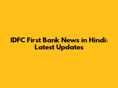 IDFC First Bank News In Hindi: Latest Updates