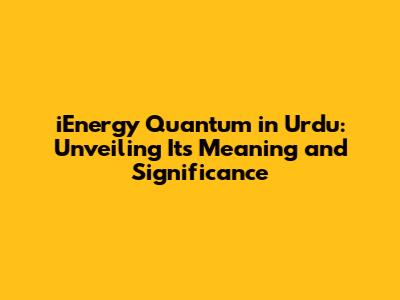 IEnergy Quantum In Urdu: Exploring Its Meaning & Significance