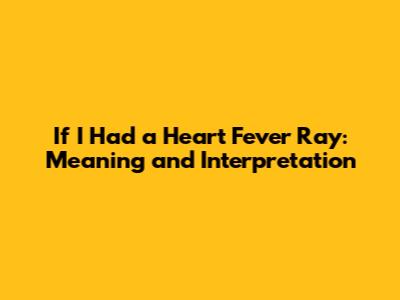 If I Had A Heart Fever Ray: Meaning And Interpretation