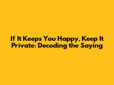 If It Keeps You Happy, Keep It Private Meaning