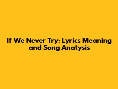 If We Never Try: Lyrics Meaning And Song Analysis