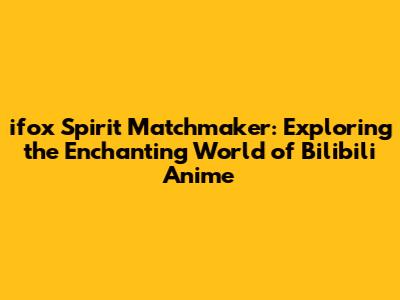 Ifox Spirit Matchmaker: A Bilibili Anime Deep Dive