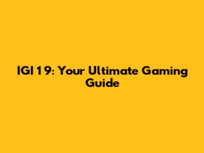 IGI 1 9: Your Ultimate Gaming Guide