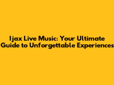 Ijax Live Music: Your Ultimate Guide To Unforgettable Experiences