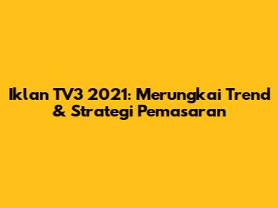 Strategi Pemasaran dalam Iklan TV3 2021 mencerminkan pendekatan yang digunakan oleh pengiklan untuk menyampaikan mesej mereka, membina hubungan dengan penonton, dan mencapai matlamat pemasaran mereka. Beberapa strategi pemasaran yang menonjol pada tahun 2021 termasuk penggunaan emosi, humor, cerita, dan teknologi untuk menarik perhatian penonton dan mendorong mereka untuk mengambil tindakan. Penggunaan emosi adalah strategi yang sangat berkesan, kerana ia membolehkan pengiklan membina hubungan yang mendalam dengan penonton. Iklan yang menyentuh hati, yang menampilkan cerita yang relatable, sering kali lebih berkesan dalam membangkitkan emosi, seperti kegembiraan, kesedihan, atau kebahagiaan. Pendekatan ini membolehkan pengiklan menyampaikan mesej mereka dengan lebih berkesan, membina hubungan yang lebih kuat dengan penonton, dan mendorong mereka untuk mengambil tindakan.