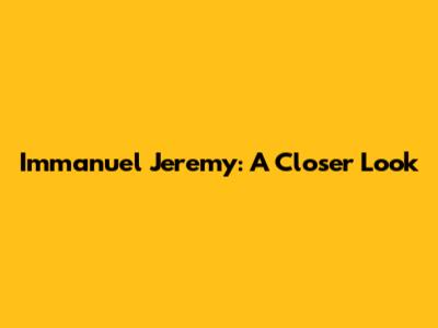 Immanuel Jeremy: A Closer Look