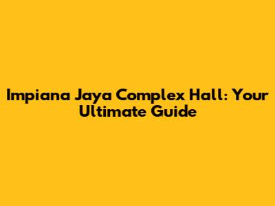 Impiana Jaya Complex Hall: Your Ultimate Guide