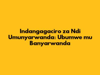 Indangagaciro Za 'Ndi Umunyarwanda': Ubumwe Mu Banyarwanda