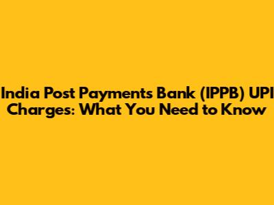 India Post Payments Bank (IPPB) UPI Charges: What You Need To Know