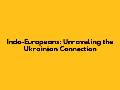 Indo-Europeans: Unraveling The Ukrainian Connection