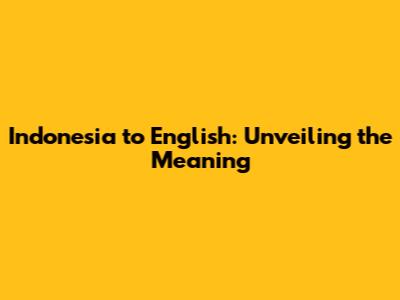 Indonesia To English: Unveiling The Meaning